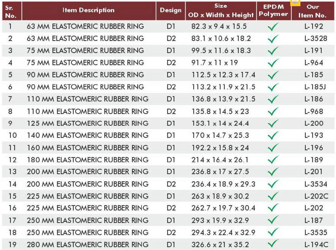These Sealing Rings are available from 63mm to 400mm as per the given detailed table.