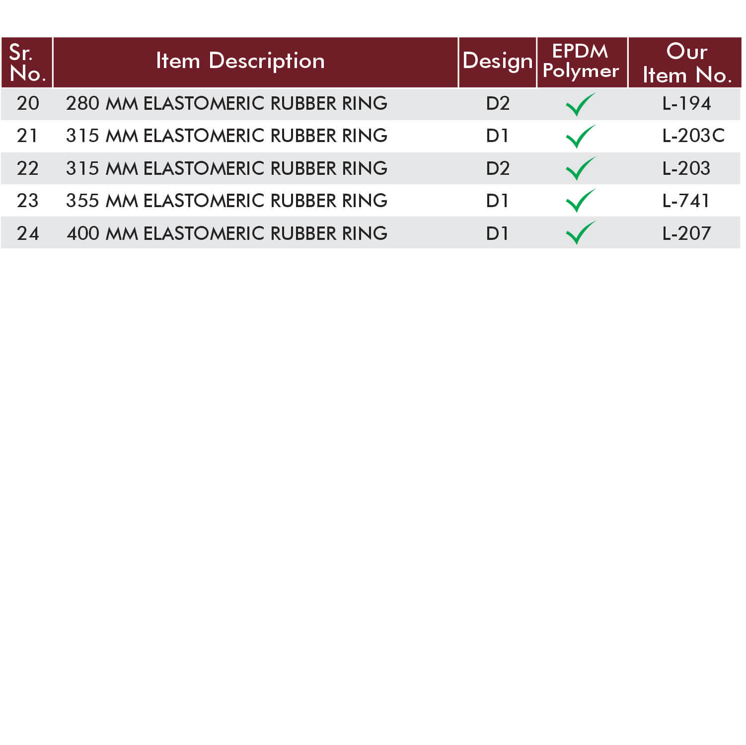 2315 mm Elastomeric Rubber Ring – D1L-203C