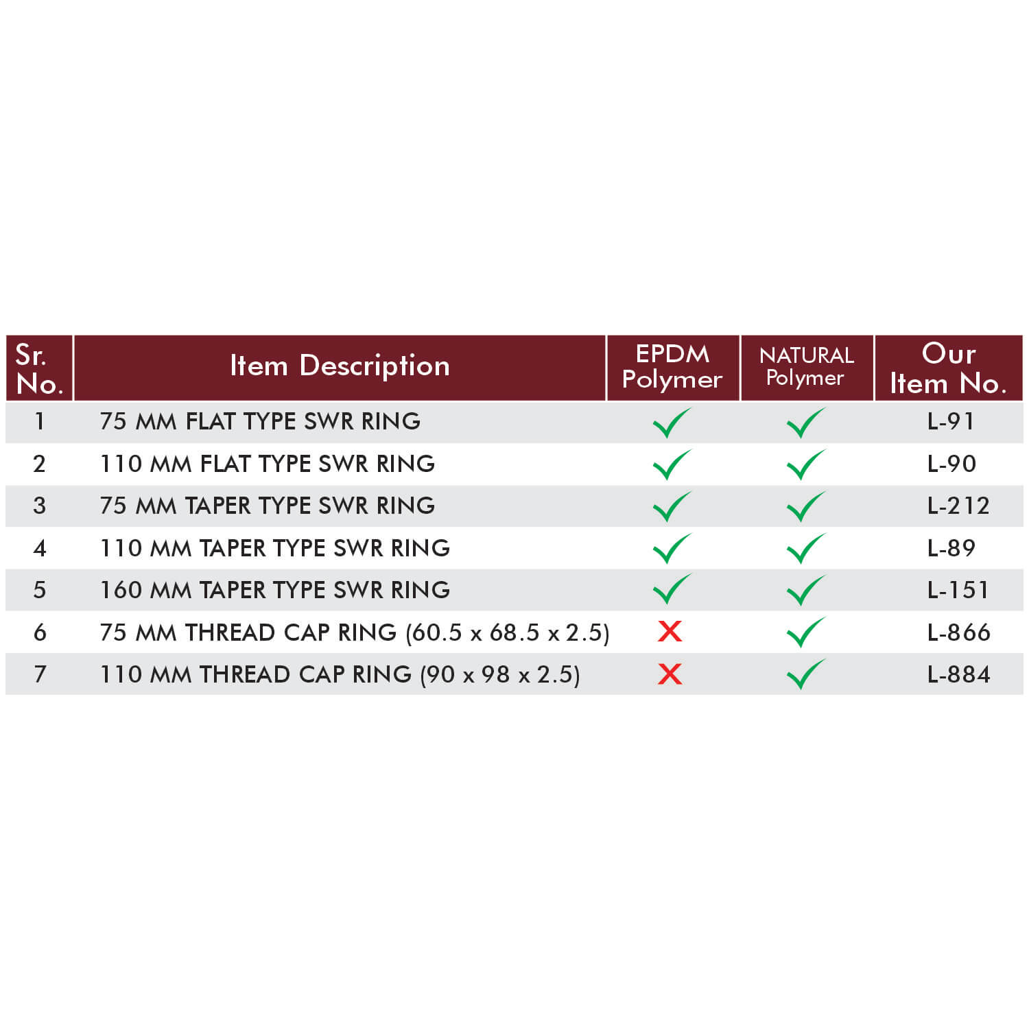 | 2 | 110 mm Flat Type SWR Ring | L-90 |
